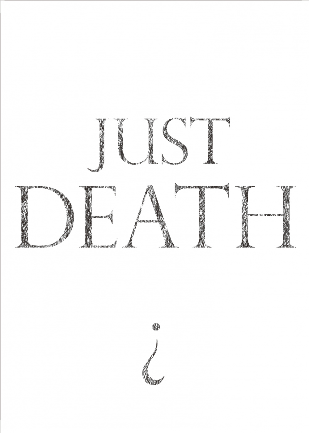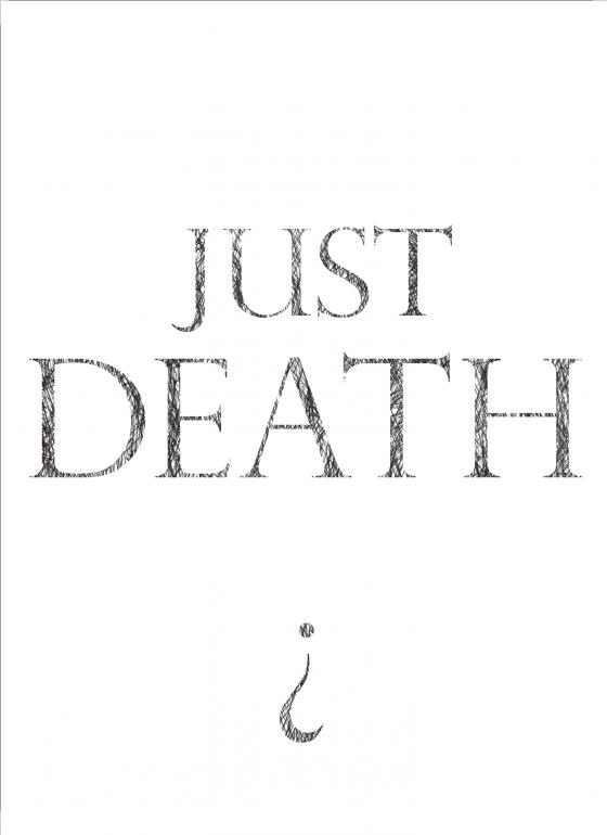 This design is intended to pose two questions. "Just death?" questioning the justice of any death, and also communicating the seriousness of the issue, suggesting it isn't "just death." the copy can be read both ways. The poster can also be hung with either end at the top, showing the duality of the concept.