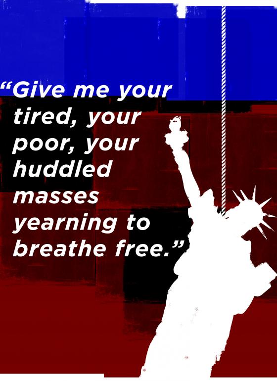 This poster uses the icon of the Statue of Liberty being hung as a symbol of a violation of the human right to life.