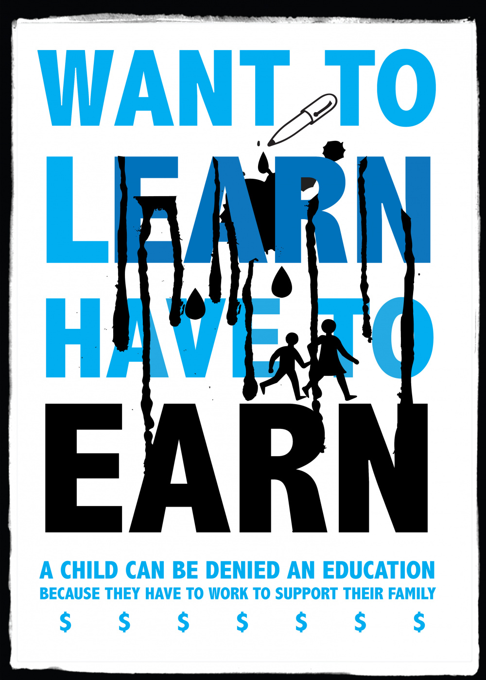 "A child can be denied an education, because they have to work to support their family." This is an A3 poster about these children around the world.