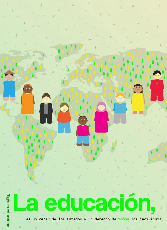 The education must be a right for everybody, without matters the race, place, sex, religion or the economical situation. The States must adopt the measures and must provide all the guarantees to ensure to all the citizens the access to the education. The main concept of this poster is: "The education is a duty of the States and a right for all the people" - " La educación es un de