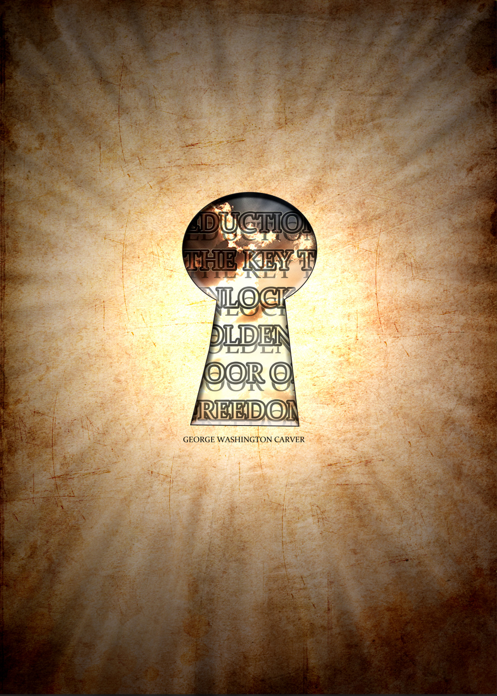 According to the late George Washington Carver, education is the key to unlock the golden door of freedom. Here the poster represents the locked and despair lives of those who are deprived of their right to education. Their days are oppressed and dark. The bright future and freedom that education brings them shines through the keyhole.