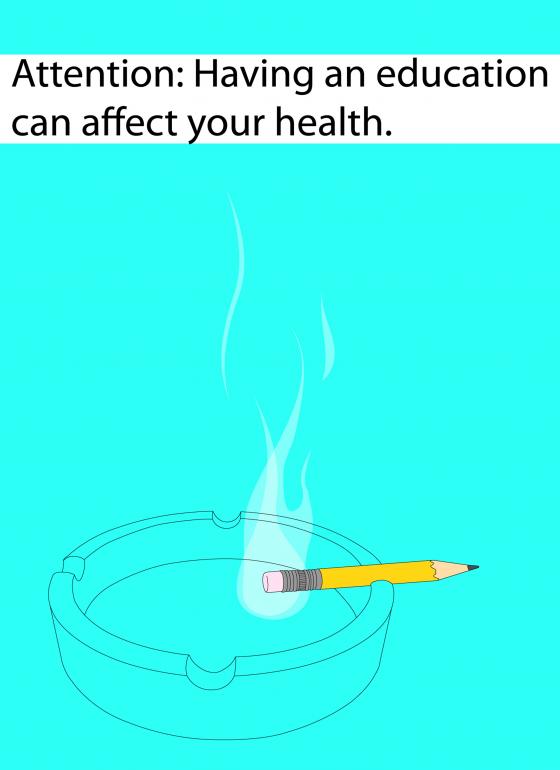 Reversing the negative message that is associated with smoking/cigarettes and the health warning on boxes/advertisements to become a positive message for education.