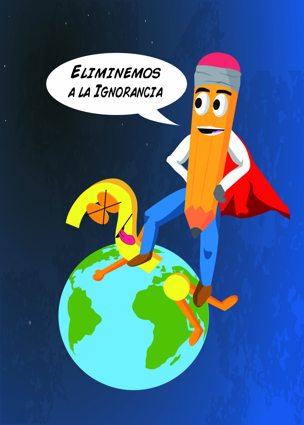 En el espacio justo en nuestro planeta tierra , el súper lápiz derrota a la ignorancia de la educación.