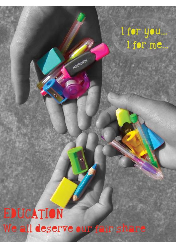 2011 call for entries asked for posters to promote the Right to Education. We believe that education gives people across the whole world the chance to break the cycle of poverty: to live in a more equal world without discrimination, where everybody has the same chance to learn the same skills and enjoy the same success. To enjoy a better tomorrow. And all that makes it the perfect subject for poster for tomorrow to address.