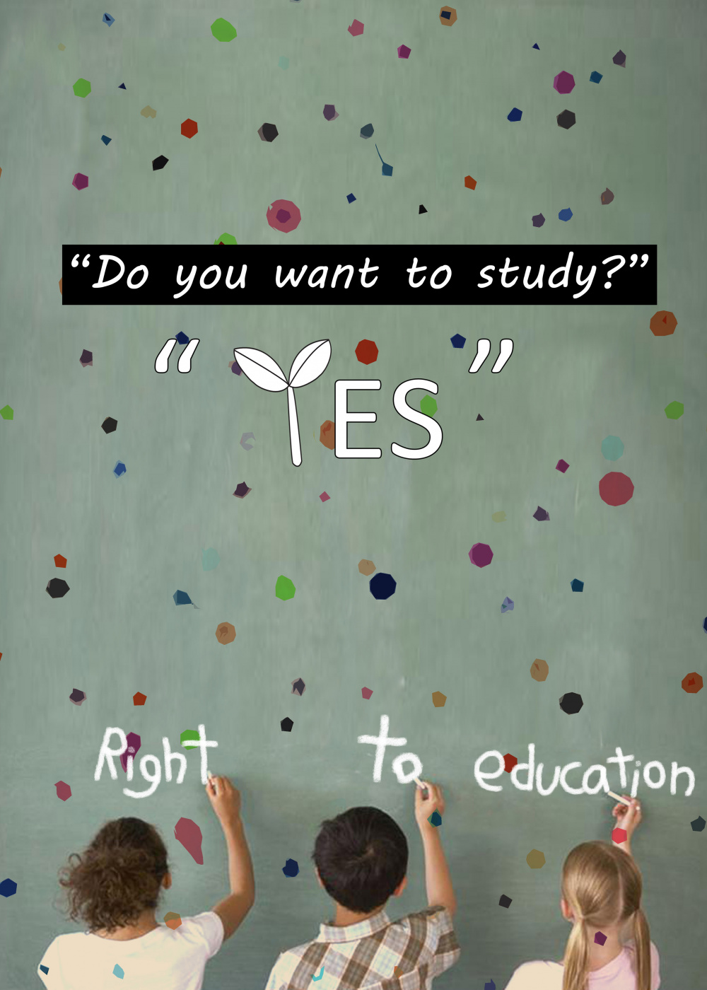 Y is for yes to your future children´s symbolic representation of the bud. ´Do you want to study? ´YES more emphasis on the phrase because, to express many of the children were sound. In addition, the board and the multiple colors, different sized circles to represent many of the children had a dream the future.