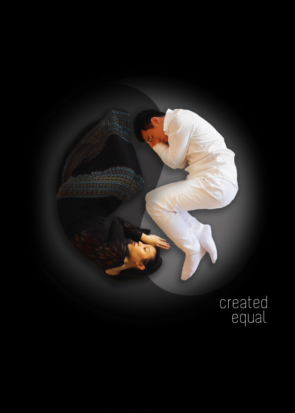 Yin yang is an asian concept that is used to describe the duality of complementary and opposite forces. Here, the yin yang symbol is used to portray the harmonious relationship between the male and female energies - they are different but created equal.