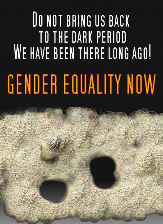 Let the women grow and receive equal opportunity. Do not bring them back, the dark period they were there. Let the women hope to grow and reach greater achievements. My drawing this poster, is the technique of digital painting, based three dimensional. The poster depicts a primitive atmosphere, a woman trying to get out from the black hole.