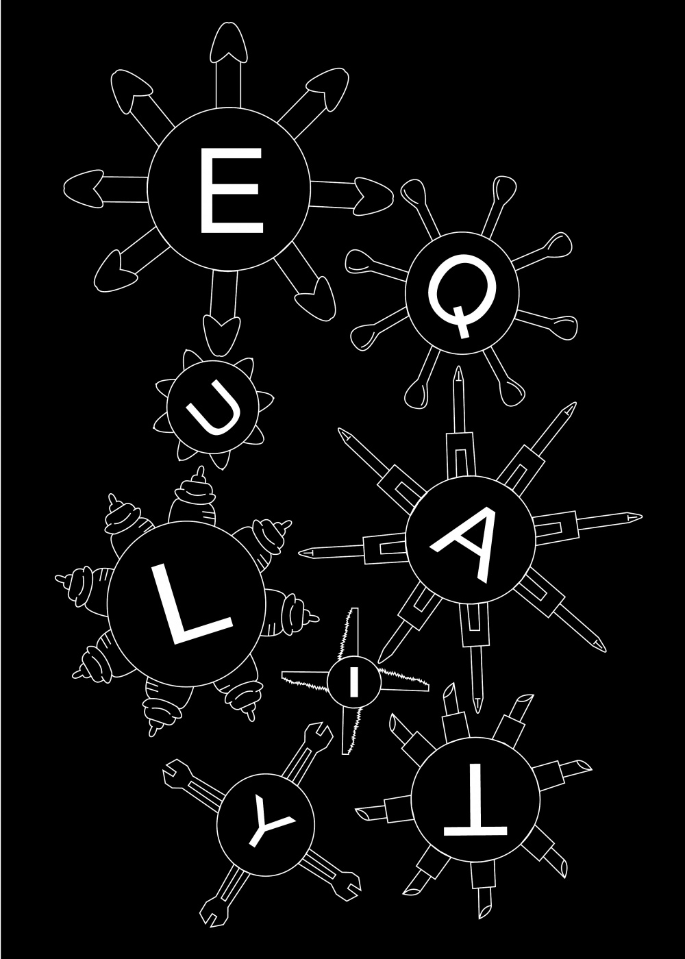 both my posters have the same definition but with this poster I wnt with simplicity and with the second one I gave it a metallic look just like in mechanisms and instead of adding the word gender i add components which represent male and female.Thwe word equality consists of 8 letters and i divided the letter in to 2 by adding 4 male components and 4 female components to show we are equal.The 4 ma
