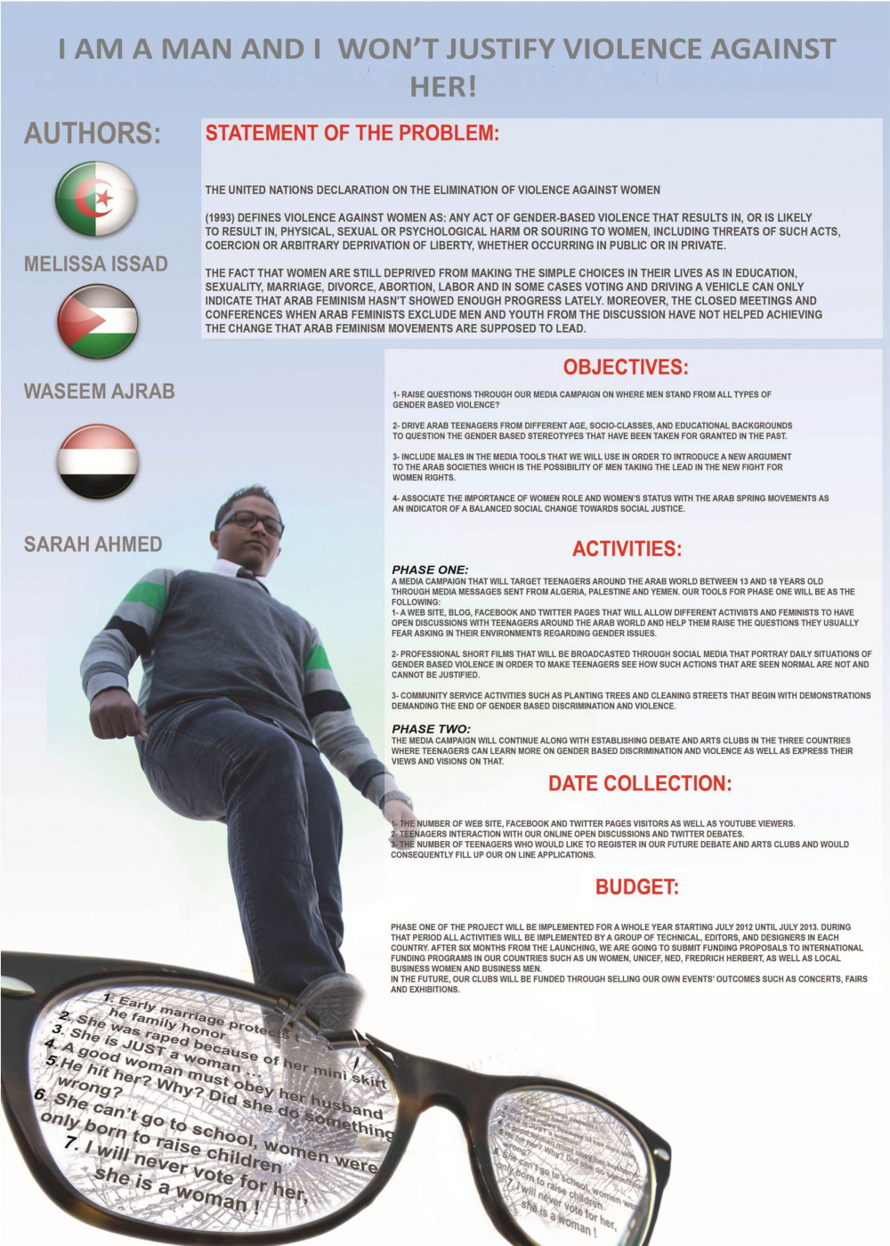 For decades, women fought for their rights. But those talks and fights were made by women for women. It´s time now for men to participate in this dialogue. Because at the end of the day, the woman is confronted to her father, brothers and all those men in her society who don´t even know or care about what she´s going through or what her dreams are, so that´s why we made thi