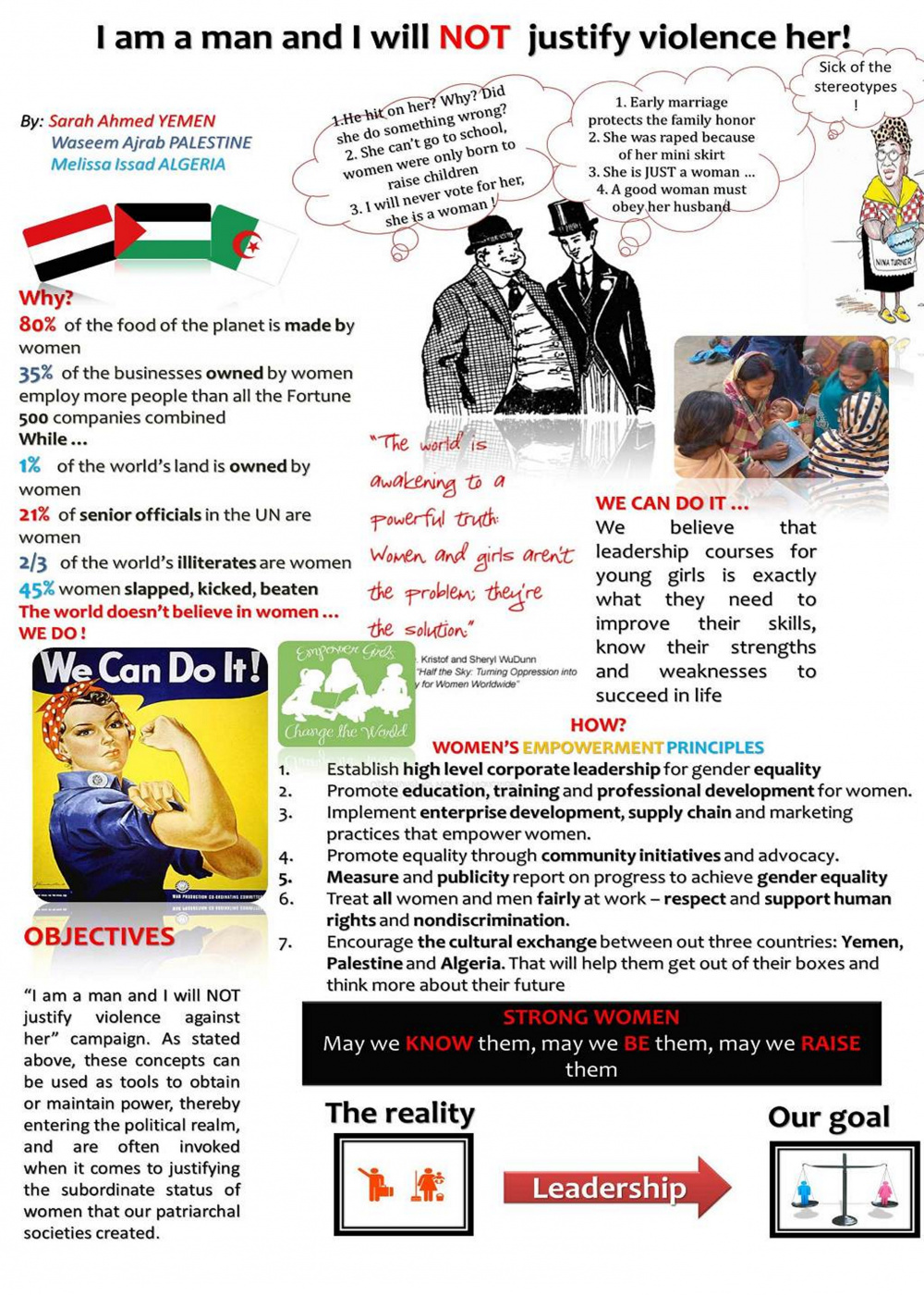 For decades, women fought for their rights. But those talks and fights were made by women for women. It´s time now for men to participate in this dialogue. Because at the end of the day, the woman is confronted to her father, brothers and all those men in her society who don´t even know or care about what she´s going through or what her dreams are, so that´s why we made thi