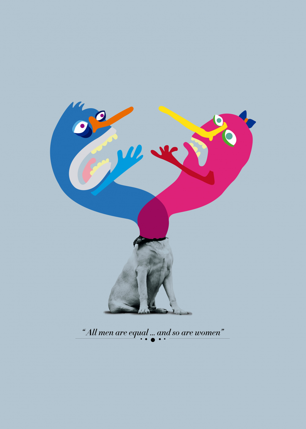El afiche trata sobre las ambigüedades de la igualdad y lo que se supone se espera de cada género, al mismo tiempo resume en una frase el ideal de igual.