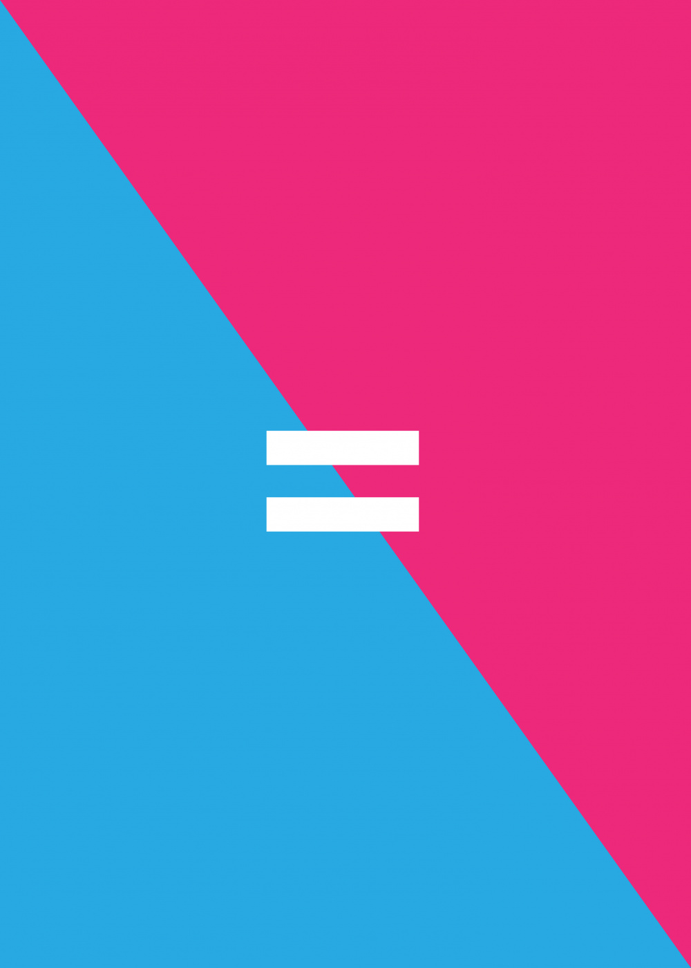 Poster with simple form that combines two colors predominately associated with female and male gender. Each color takes equal ammount of the poster surface which transcendents to the idea of gender equality. Two white strokes have dual function. First one is to point out at equality of the two polarities, and the second to nullify the border between two colors, and therefore the border between gen