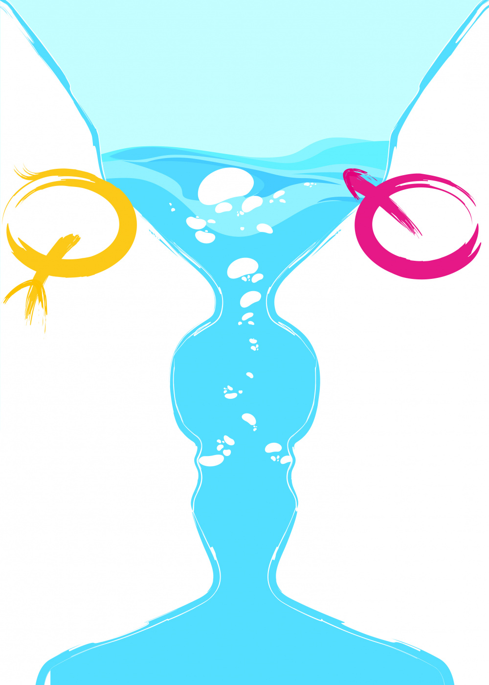 De forma vectorial y un efecto visual pretendo representar la igualdad de género."Todos bebemos agua de la misma copa, por ella respiramos y vivimos en un hermoso mundo". El agua no discrimina a ningún ser vivo, sea varón o mujer.