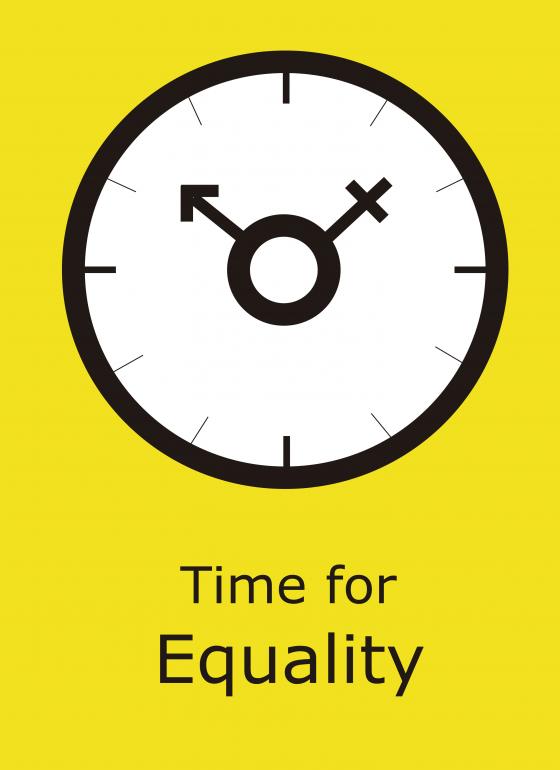 Men and women equally represented as two needles in the same clock. In this century, it is time for us to be equal