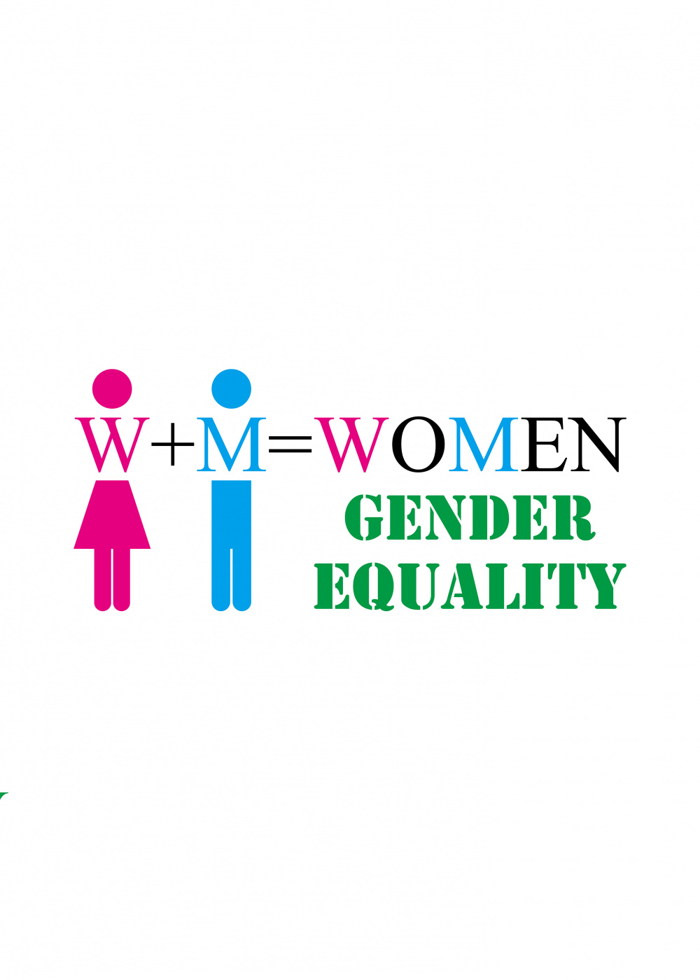 W+M=WOMEN, representing the men and women, in fact, have a common gene, so women can also take up the matter of men, men women´s work they can do with each other without any "gender discrimination", which isGender Equality "; green text but also a symbol of" Equality ", according to the above design concept, that is, directly points out the significance of the"