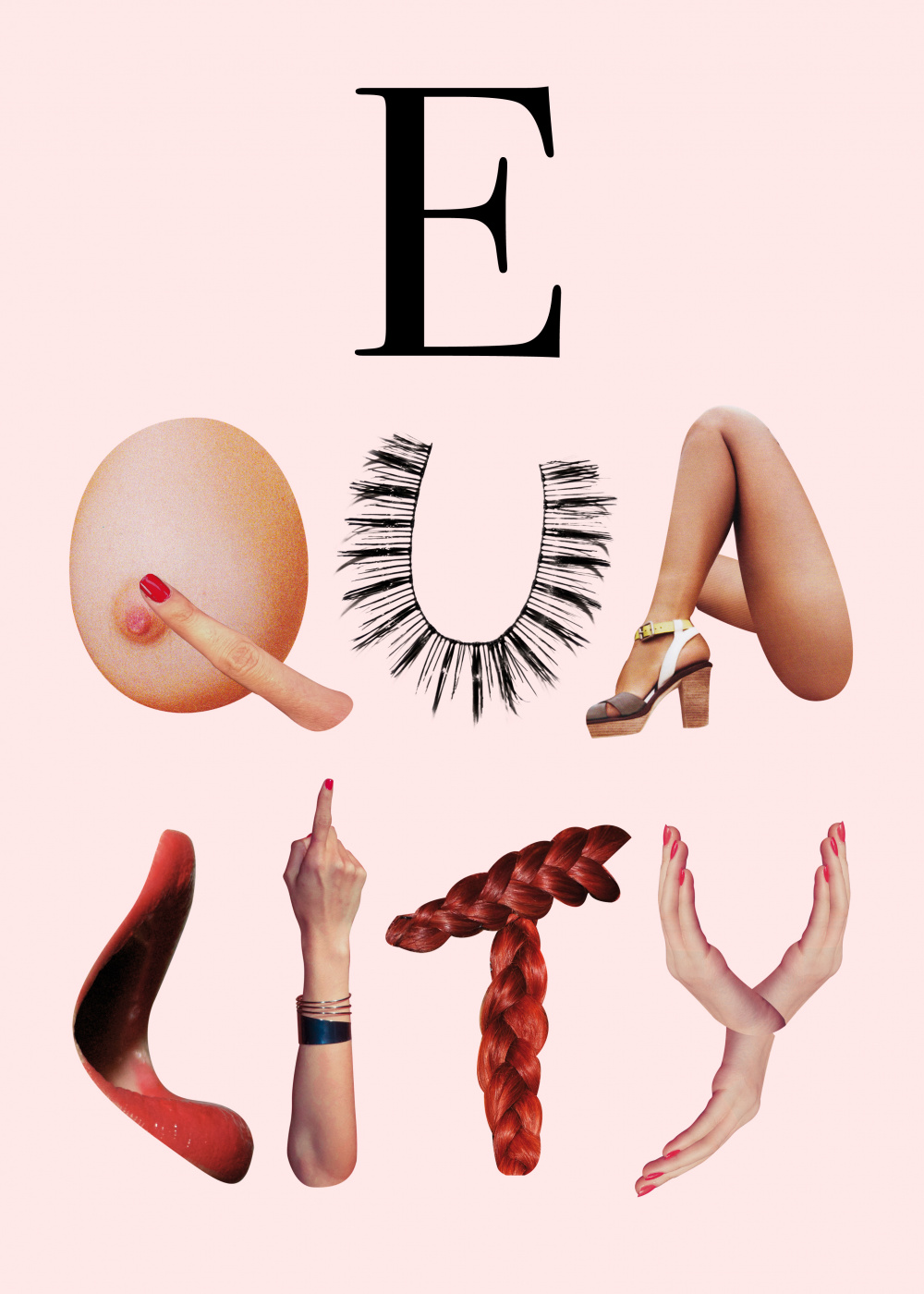 The poster should clarify how much more quality we could gain in all areas of life, if women would have the same chance as men. I used feminin bodyparts, to show that a woman doesn´t have to change anything to be a strong person. Not her way of thinking neither the way she looks.