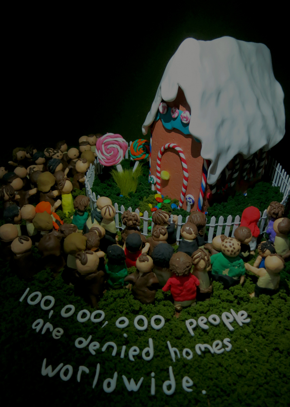 Poster for tomorrow's 5th annual call for entries, campaigning for the universal right to housing.