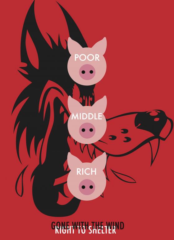 As the story of the three little pigs goes, The shelter of the first and the second pigs gets blown away by the wolf (Government) while the Rich live safely in their house made of bricks