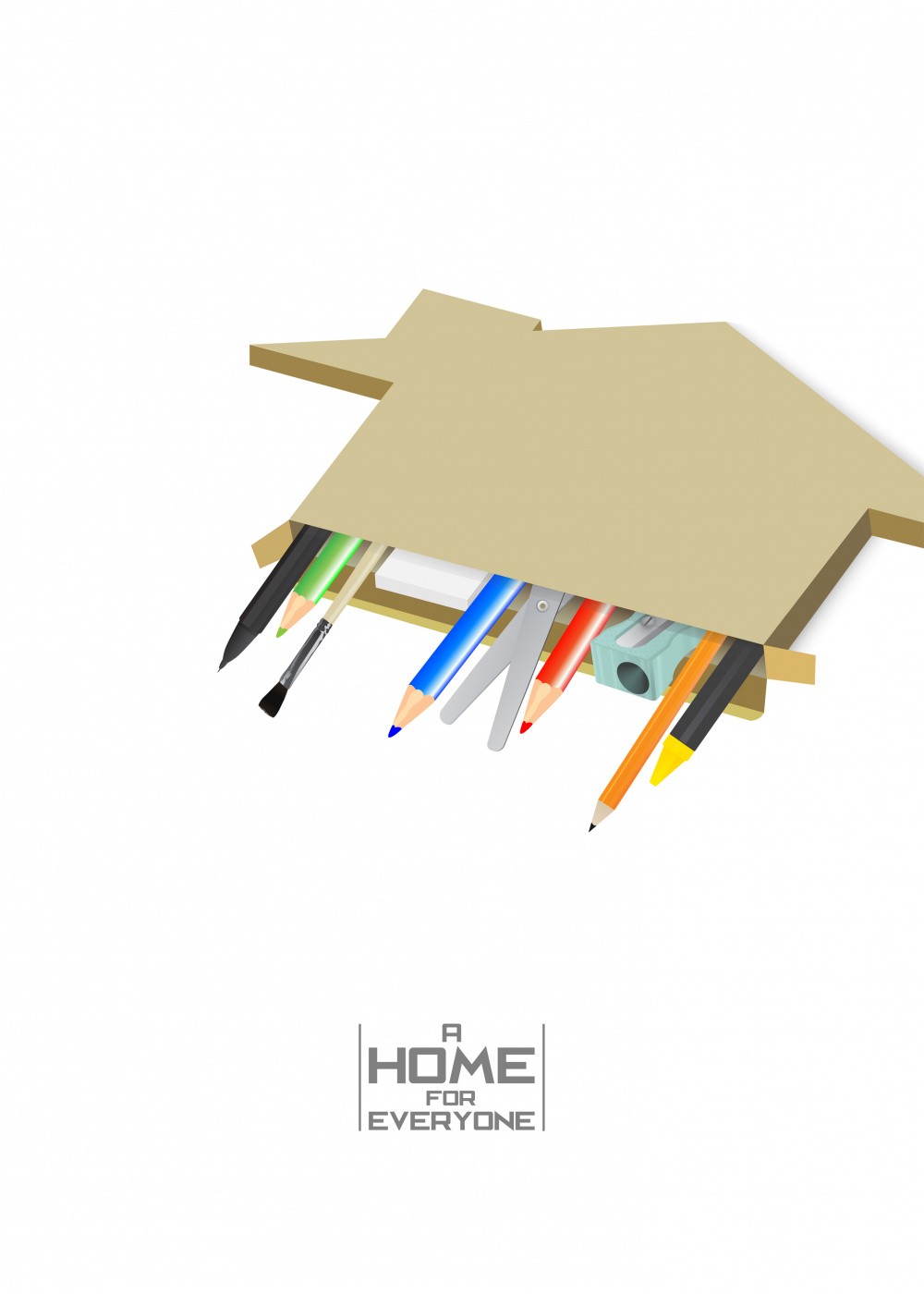 Its an illustration of basic stationary, where all are in a box of home, showing that, no matter who you are, you deserve a home