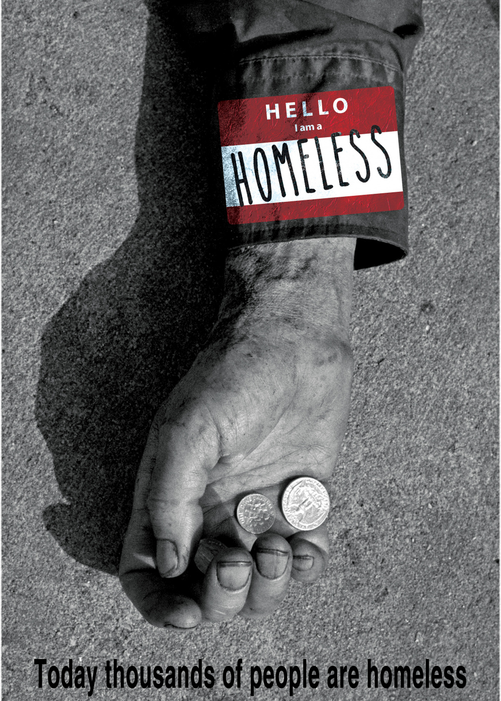 is a poster that shows what the homeless live in their day to day, with a bit of irony shows the situation in which these destitute commonly found.