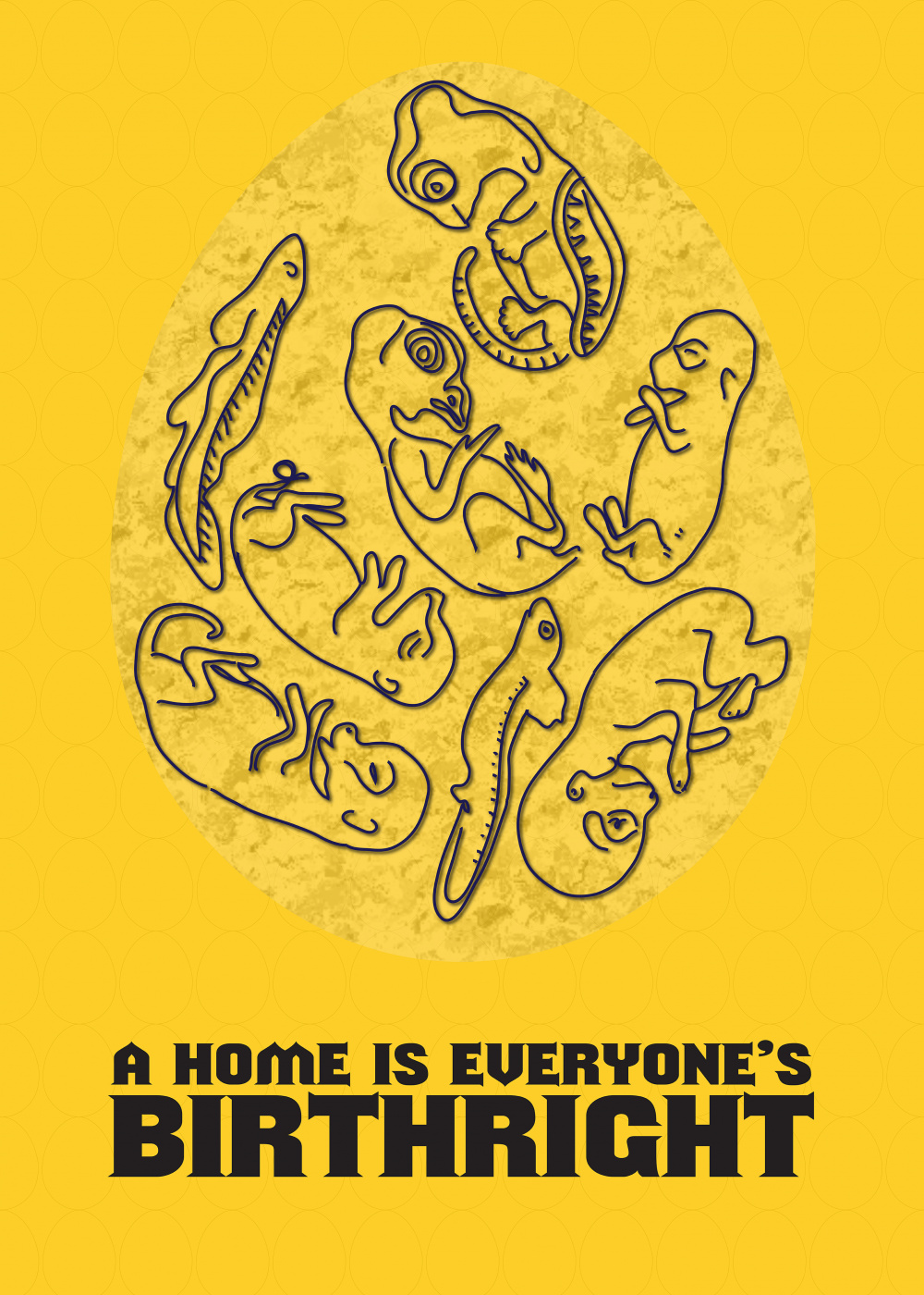 Idea of this poster is; when a life is being generated, even nature gives it a home, a protection. So here's the summary: having home is everyone's birthright, either it is human beings or animals.