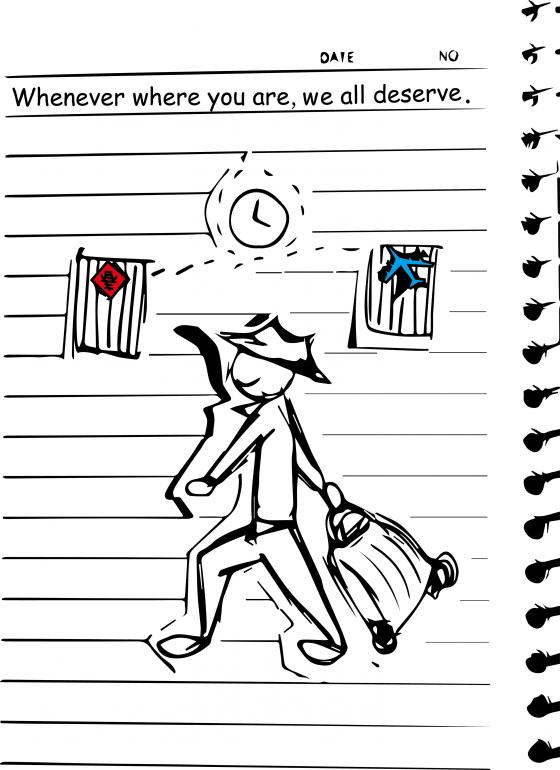 Wherever where you are, we all deserve a home. I use two doors which display the house and a traveler to become a chinese word ,home.