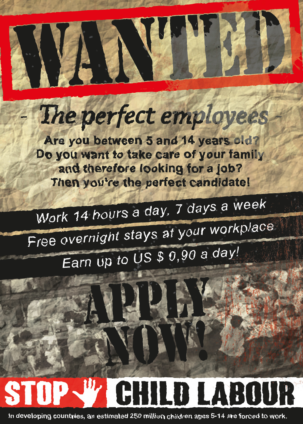 Job opening for 'under aged' employees. Apeals to pour and underpriviledged children and families.