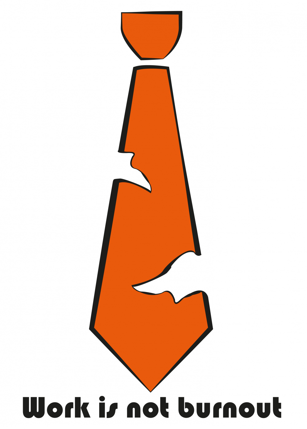 The tie seems that was worn and in turn burned, this referring to burnout, but more accurately to the burnout syndrome. This syndrome is caused by low wages, few professional incentives or loss of social prestige are also factors favoring the appearance of Burn Out.