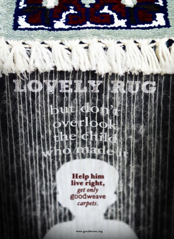 Rugs are a common item in one's living room, but we seldom think on their origins; who made the rug, where did it come from? Sadly, the carpet weaving industry is filled with child labourers trapped behind the loom, who are underpaid, and whose presence prevent adult carpet weavers from being paid more. The GoodWeave label will ensure that your carpet comes from a source that is child-labour-free.