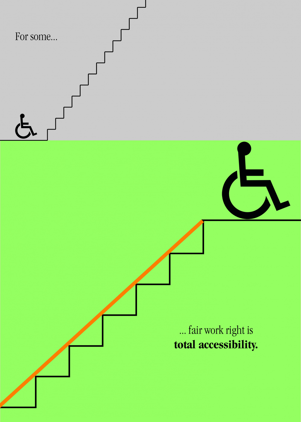 We all have the right to work without discrimination or exploitation of our gender, age, nationality or physical condition.