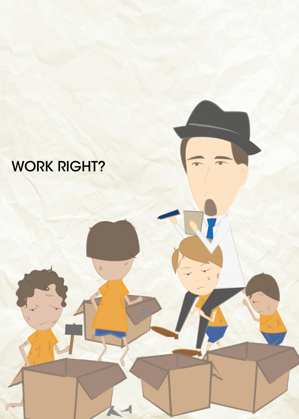 This poster illustrates the working environment of child labours by deliver the sense of children's drawing to create contrast in serious issue that this ugly truth shouldn't occur with those innocence children.