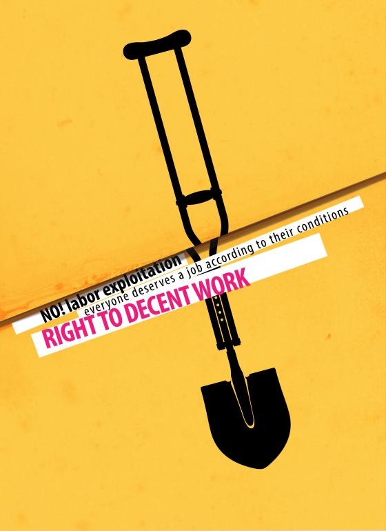 We all have the right to work without discrimination or exploitation of our gender, age, nationality or physical condition.