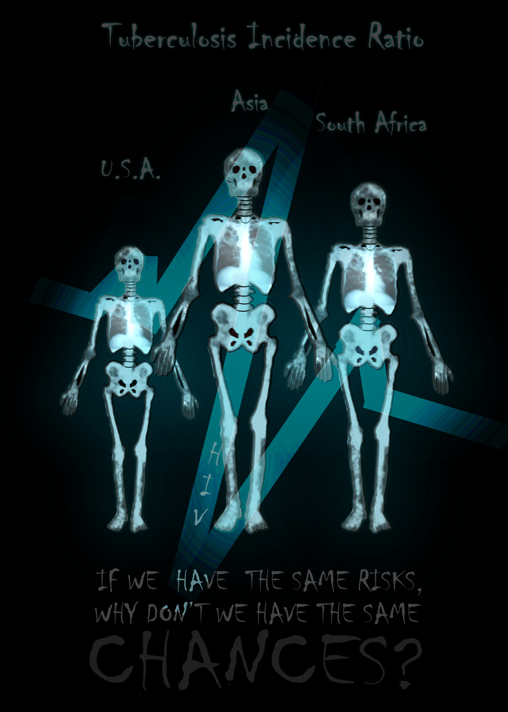Tuberculosis is a serious health problem that is in every corner of Earth, sadly, we can't say the same about the treatment, due to low budget in the poor countries they don't have the same oppertunities that people have from the north,this is what this work is transmitting.