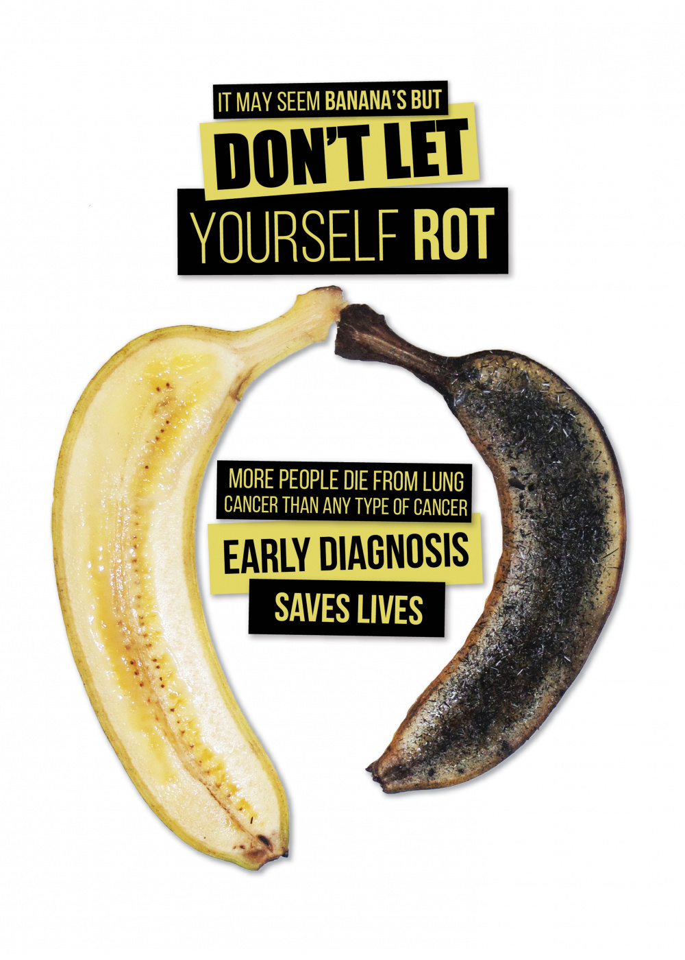 An advertisement poster that discusses the long term effects of smoking, pollution such as cancer and lung disease.