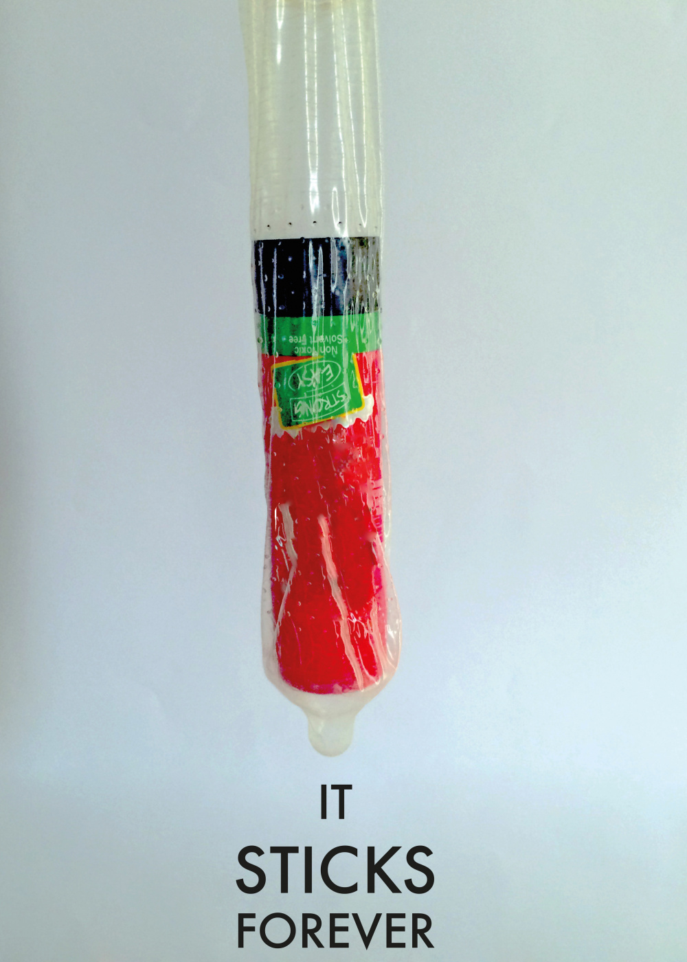 My concept is based on education and how it can help and assist or rather, how it is key and vital in preventing diseases. Essentially how education can help prevent someone being susceptible to catching any diseases. Basically the written message will be “Prevention starts with education”. The visual is that of having a glue stick filled/ placed into a condom. The message derived from here is that by being educated one is knowledgeable enough to know that you have to practice safe sex in order to prevent yourself from contracting diseases such as HIV/Aids and that of protecting safe sex, hence the message is “It sticks forever”, meaning that because one does not have access to education therefore they arent knowledgeable enough to use a contraceptive and perform safe sex, and once contracting a disease, it stays forever and can lead to death ultimately.