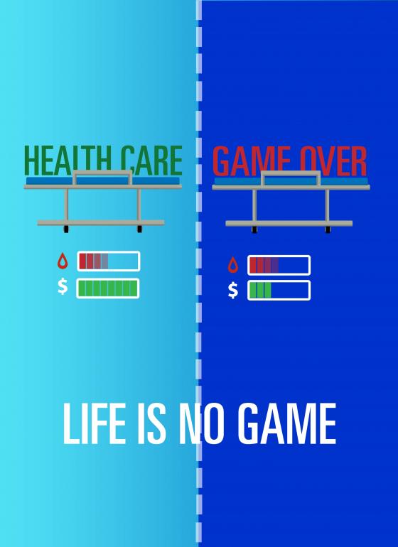 In this poster I chose to bring a certain irony to the theme by giving the viewer the idea they're playing a game. And the only thing that would make them survive to keep playing, is money. Because if they don't have any, the game is over, and they die.