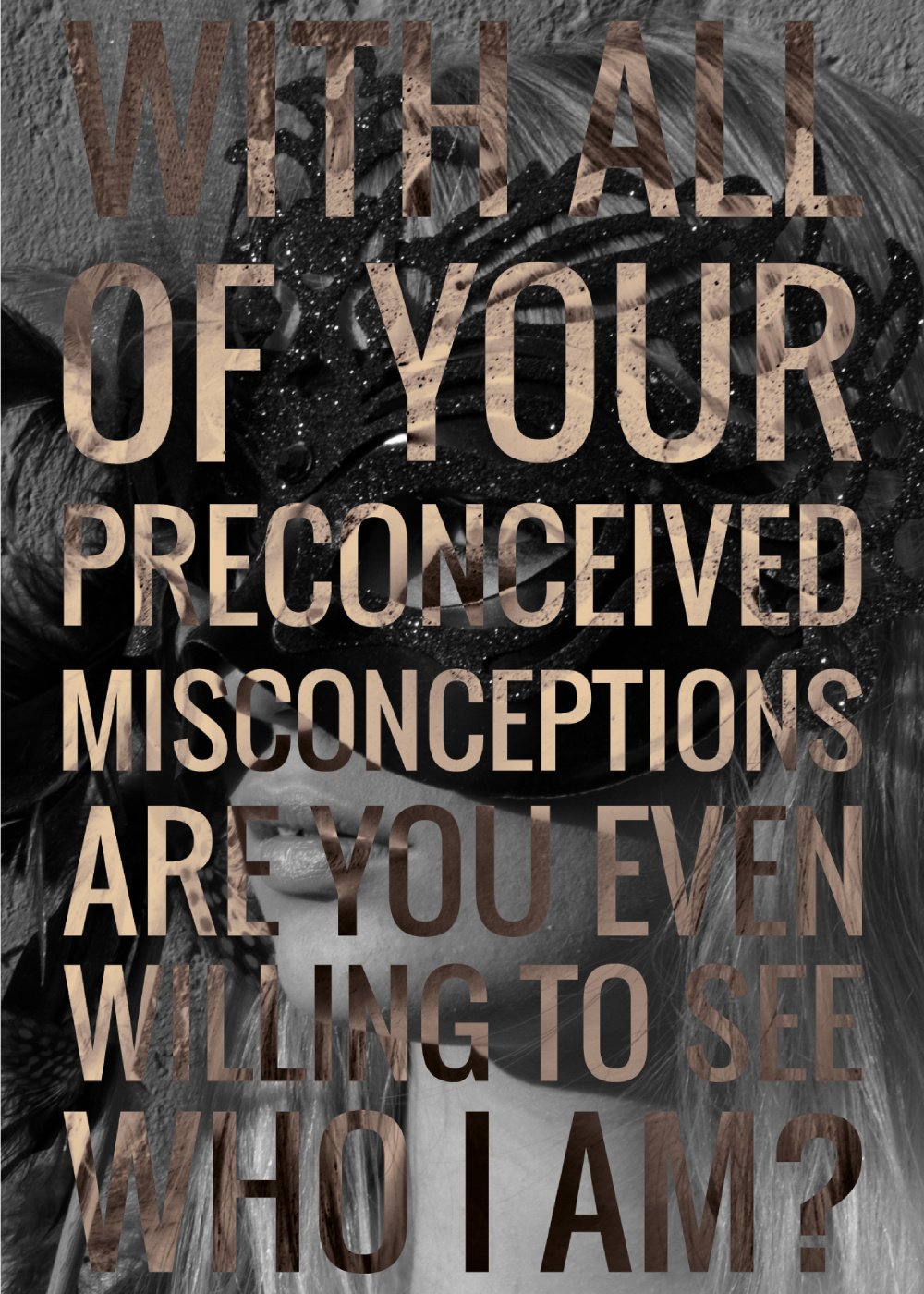 In all walks of life people are discriminated against, based on stereotypes, and misconceptions, despite who they are as a person, and what they are capable of doing. We are all defined and stereotyped by other people and in some sense considered to be subaltern, we are not always heard, and because of this we ultimately cannot be heard because of what people think of us. The mixture of text and imagery shows how words and images all blur into one when people don’t hear what you have to say, based on who you are and where you come from, and how you look.