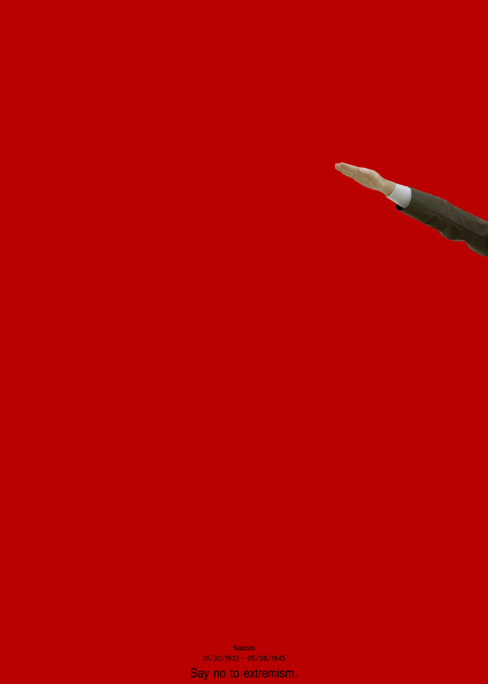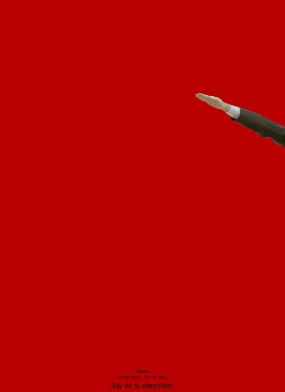 Nazism represented in a minimalist way, focusing on the subconscious. A simple gesture speak more than 1000 words, saying only "Heil Nazi"