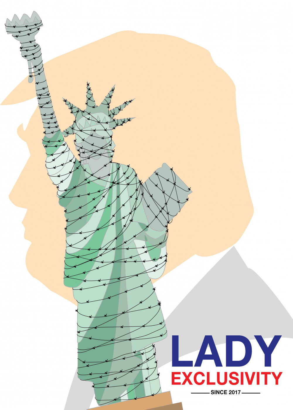 Lady Liberty represents freedom and welcoming all people in to America. She stands for freedom of oppression and friendship between all nations. However since President Trump was elected he put a 90 day ban on 7 Muslim-majority countries and also wants to build a wall near the US-Mexican border. The title 'Lady Exclusivity' represents a play on the word 'liberty' and the fact that the statue is wrapped with barbed wire implies that Trump is now in power and going against what the statue of liberty represents i.e. united together. Embracing Diversity paves the path to freedom on all levels. We are all unique in our own special way and thats what adds colour to the world.