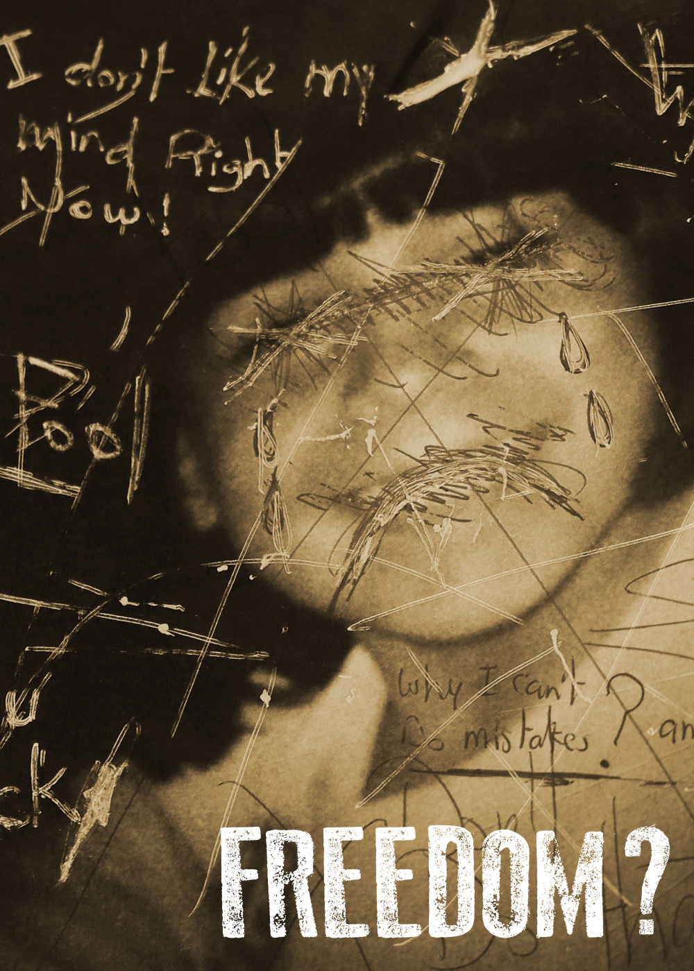 When we were children we won't allowed to do mistakes. Ifs we do we will be punished. We must be perfect in the eyes of our parents. When we grow up we used to be perfect, and that why we fear to do mistakes and learn from them. In this poster an adult just scratched on her old picture when she was a child. telling that she is not agree on her mentality, and who she is now.