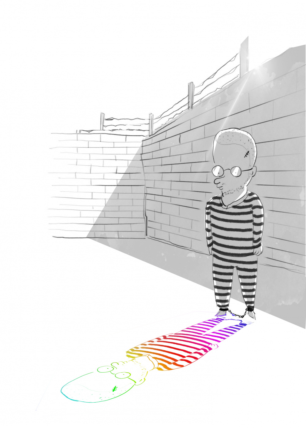 A man who sees hope from his shadow. Hope is like a rainbow of despair.