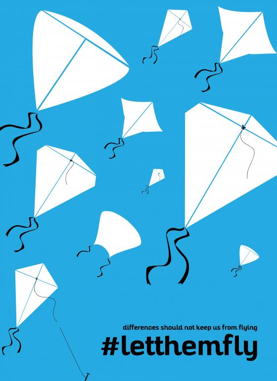 We are all different but that shouldn’t keep us from flying. The kite with the cut wire symbolises all the refugees ( and migrants) who are trapped or baned. The different shapes of kite symbolise human ethnic and cultural differences. All of them looking for freedom of movement.