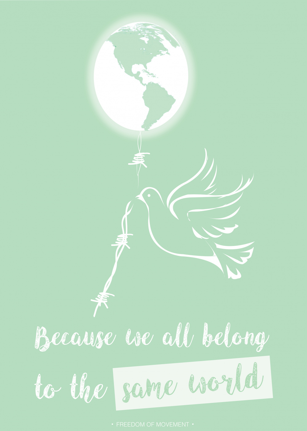 The light that is under the ballon and the green color in the poster background enhances the message of hope, and the slogan encourage us to follow the dove’s example.