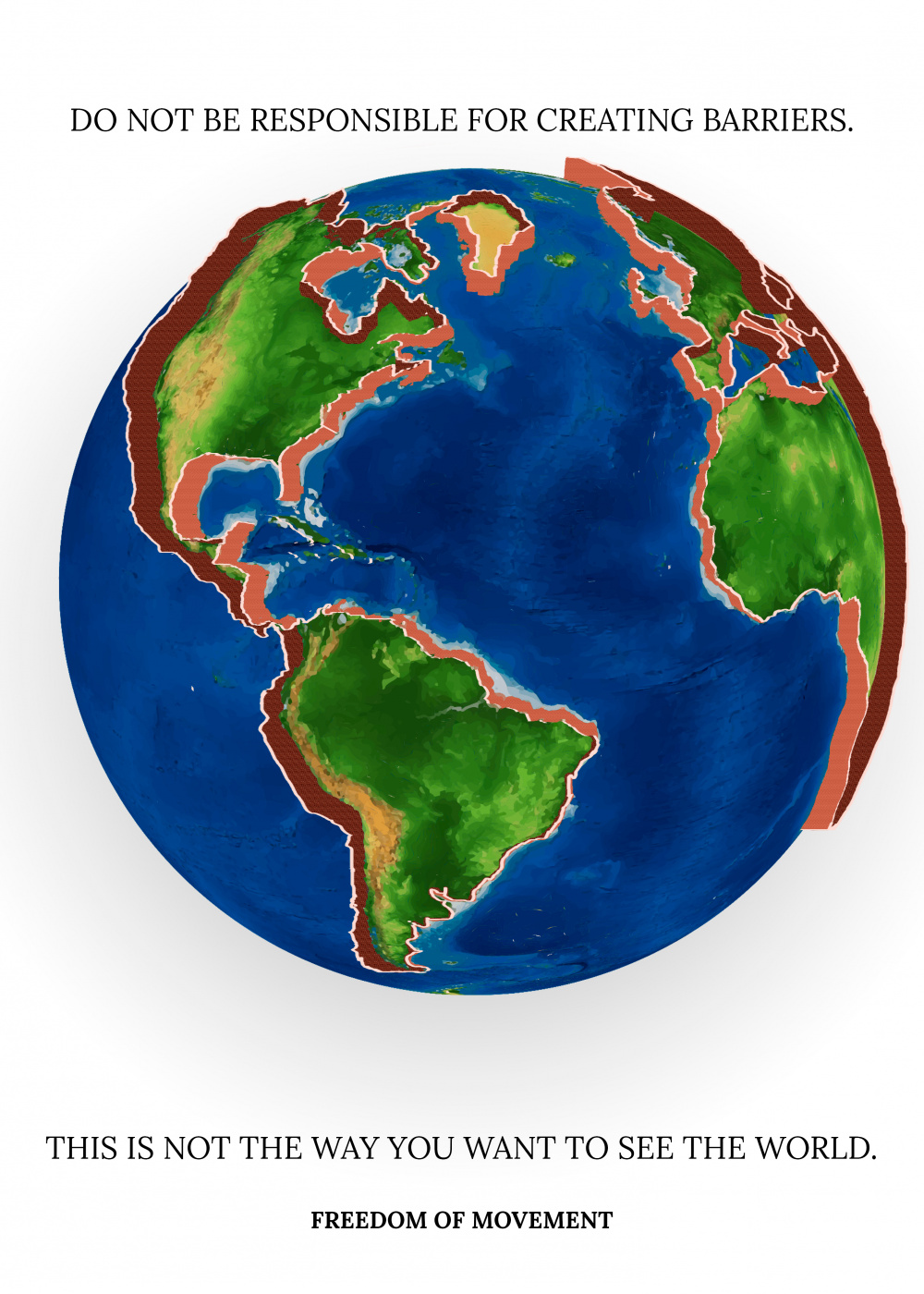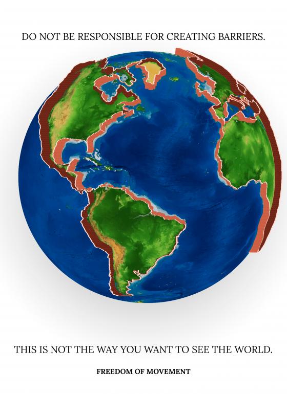 Poster made for Freedom of Movement, and its meaning is to show how people don't want to see or feel in the world, so maybe we can trigger a defense mechanism and make them realise that what's happening is wrong and we should give it as much awareness as other world wide known problems have.