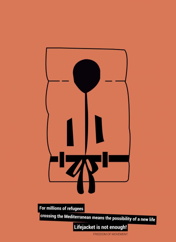 The lifejacket is something that appears frequently in the photographs of refugees, but a lifejacket is not enough to save them and to help them start a new life. This is the motto of my poster.