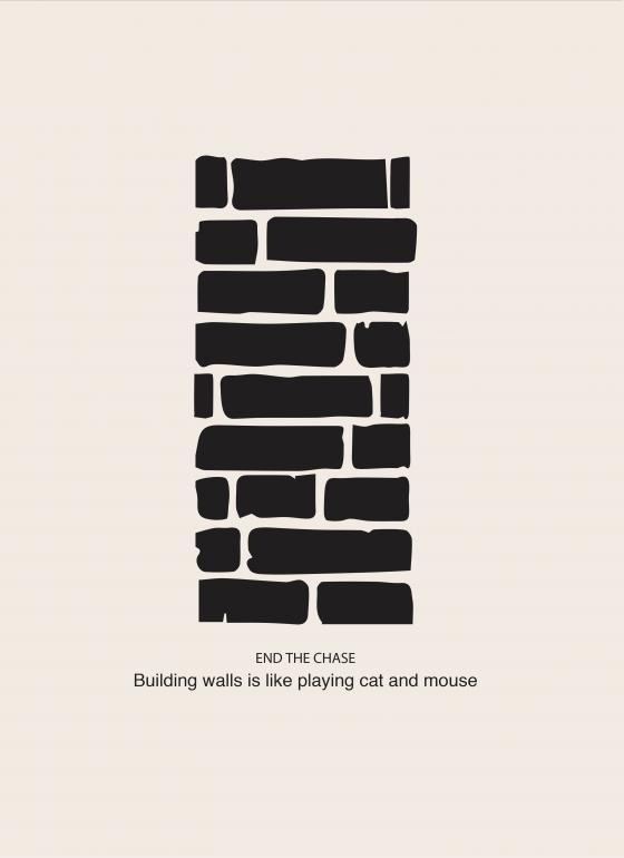 The wall represents the movement of a cat chasing the mouse.
