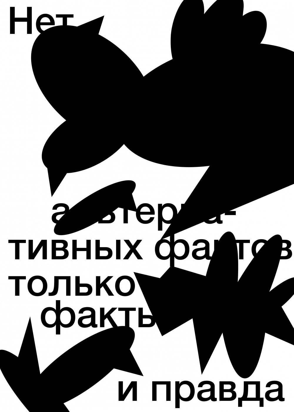 I used the quote from Fernando Trías de Bes: There are no “alternative facts,” but just facts, and there is truth" in Russian translation. Idea of a poster is visual metaphor for false news and posts block and hide truth and important information from us.