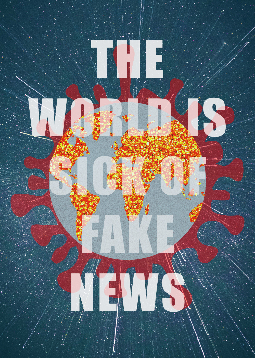 As the novel Coronavirus spreads around the world, it has become a prime topic for fake news and fake news about the virus has been spreading just as fast as the virus itself. This poster uses the word “sick” in two ways: The world taken over by the virus and the toxic environment that fake news creates. When we are more vigilant about what is really going on, we can be more discerning about what the truth is.