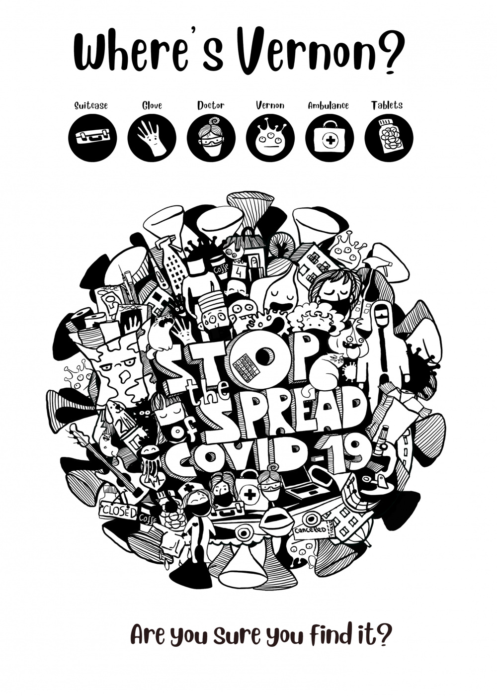 With our concept "Where is Vernon?" we wanted to show the problem of lack of knowledge about Covid-19. We added the playfull character to the concept because with our topic we don't want to cause panic but appeal to the people in a playful way to make sure they are curious and have fun while dealing with the topic and the concept.