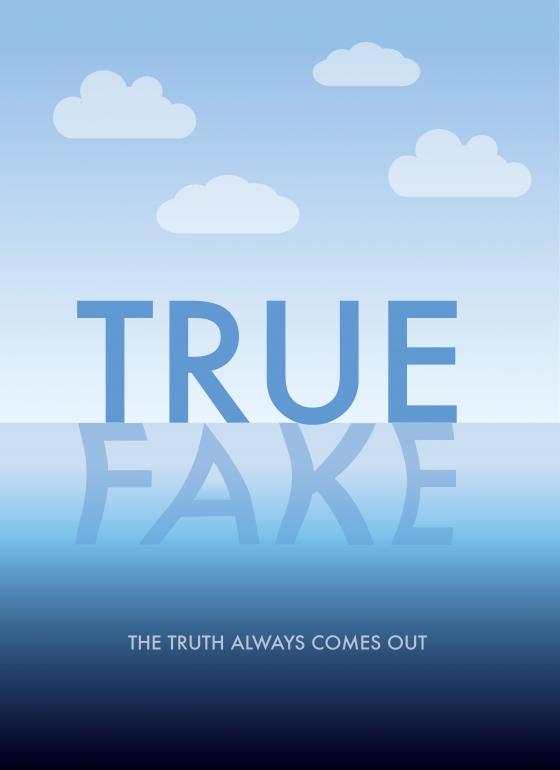 In this poster, I wanted to convey the idea that, as the slogan itself indicates, the truth always comes out on top, no matter how fake news the media emits, the truth always appears in the water.
